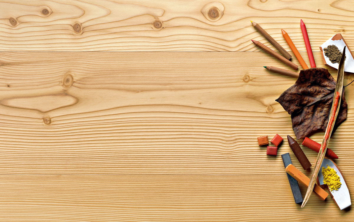 Brushed, varnished, oiled and colored. Characteristic of the collection is the materiality of the product. Warm colors and crumbly like cookies.