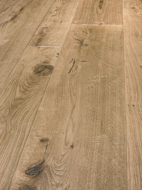 The pride and joy of Bassano Parquet that is a compendium of the handicraft expertise of our company. “Opera Prima” Collection, 3 layer wideplank in European Oak rustic quality, consists of 6 mm thick rounded top layer, birch multilayer intermediate layer and bottom layer 6 mm thick European Oak. The features are very irregular hand planing on the entire floorboard including chamfering, light brushing, filling even very evident, the finishing raw effect varnished waxed. All finishes shown in our catalogue or according to client’s sample are possible.