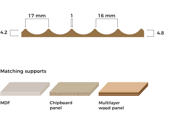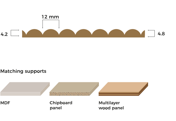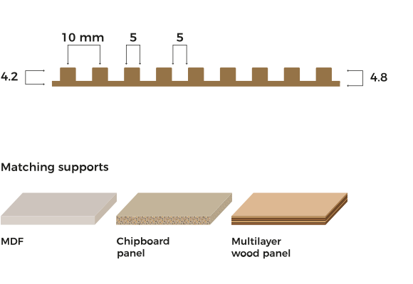 The core support can be preferably MDF, but other alternatives are suitable, as chipboard or plywood, on versions standard, waterproof or fire resistant. By using the special technologies surfaces get shaped, obtaining different textures, each one identified with a letter.